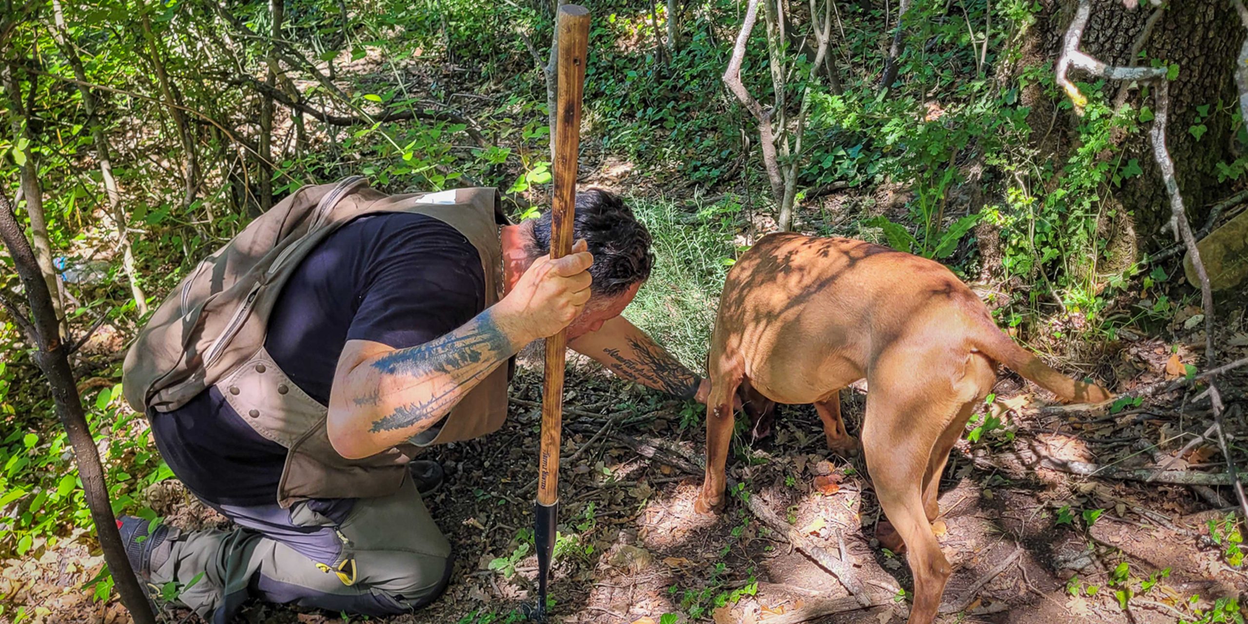 Quando il cane scova il tesoro, allora con delicatezza lo estrae per non danneggiarlo.